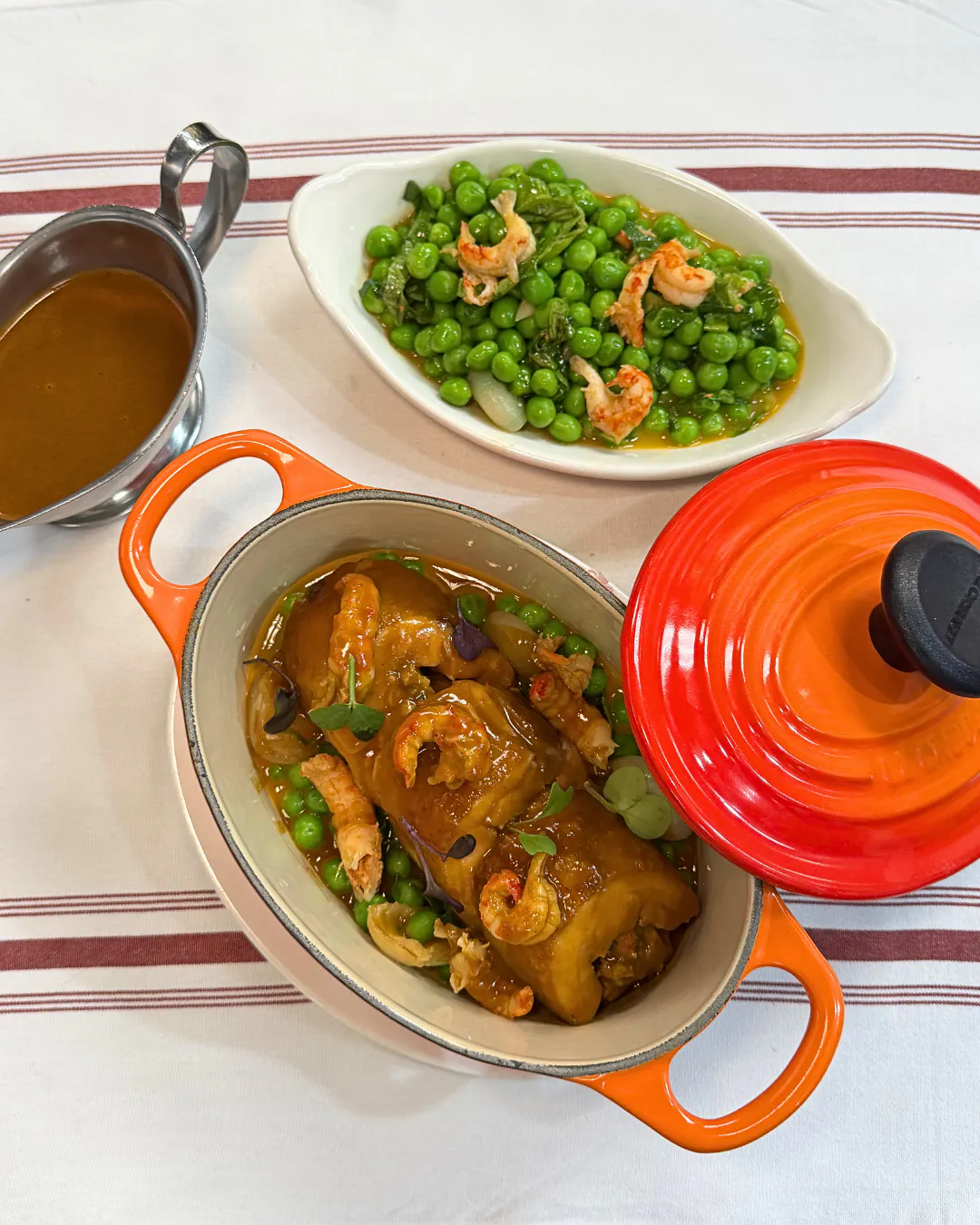 Poularde aux Écrevisses is our Plat du Mois for April at Le Gratin. This dish brings together tender chicken and delicate crawfish, gently simmered in a classic Sauce Nantua. Served with petits pois à la française, it’s a refined yet comforting expression of French tradition, perfect for the spring.